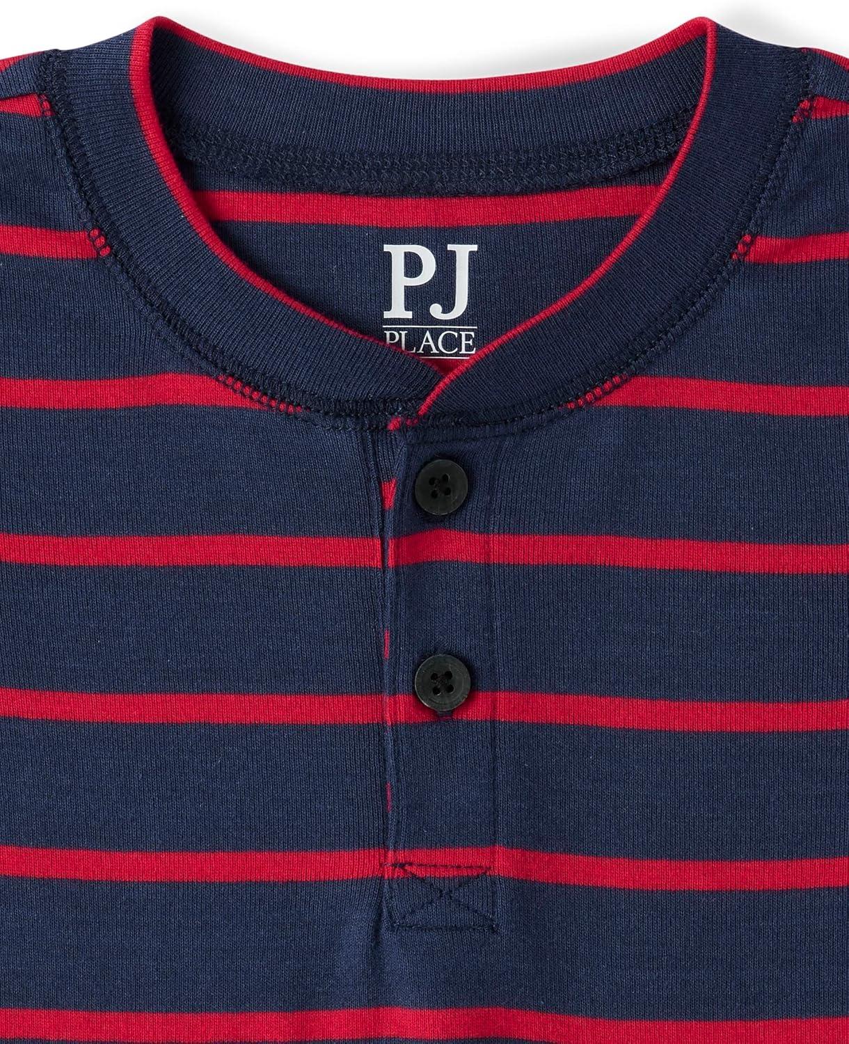 The Children’s Place boys 100% Cotton Long Sleeve Top and Pants,2 Piece Pajama Set(Ruby Stripe Henley)