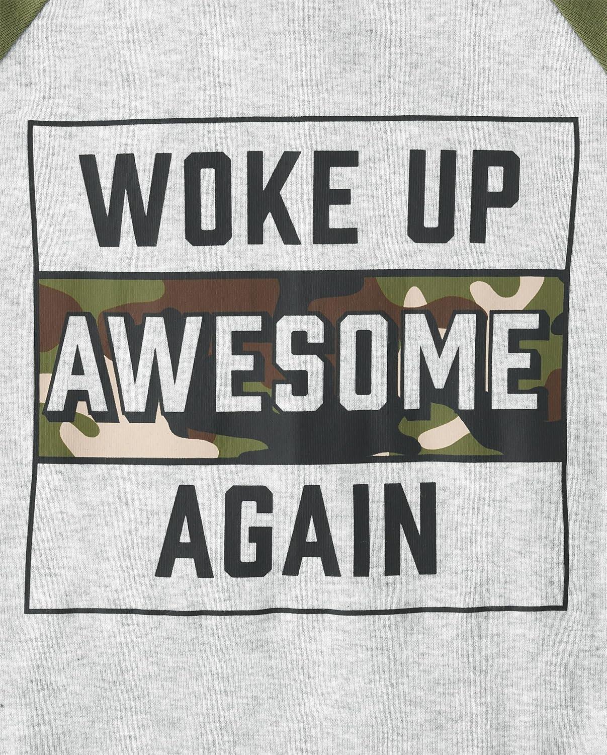 The Children’s Place boys 100% Cotton Long Sleeve Top and Pants,2 Piece Pajama Set(Woke Up Awesome)
